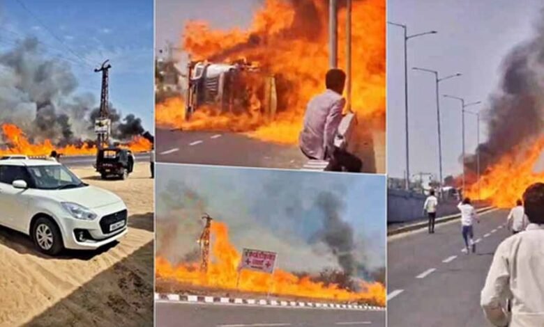 Rajasthan Accident: NH-48 पर तेल टैंकर पलटा, 200 मीटर तक आग फैली, 1 जिंदा जला