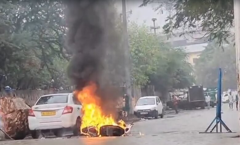 धुआं कुछ ही पलों में तेज लपटों में बदल गया और ई-स्कूटी पूरी तरह जलने लगी। आसपास मौजूद लोगों ने देखा कि आग की चपेट में आने का खतरा बढ़ रहा है, लेकिन पास में खड़ी एक कार किसी तरह बाल-बाल बच गई। गनीमत रही कि इस दौरान स्कूटी सवार सुरक्षित रहा और किसी को भी चोट नहीं आई।